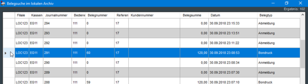 Damit werden alle am 30.09.2018 erfassten Journaleinträge auf Filiale LOC123 angezeigt.