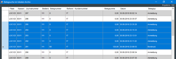 Für einige Funktionen werden zunächst einzelne oder mehrere Journaleinträge markiert (durch Drücken der Taste SHIFT bzw. Umschalttaste während der Selektion, für Einzelselektion mit Lücken die Taste CTRL bzw. STRG). Alternativ können über die Tastenkombination CTRL + A bzw. STRG + A alle momentan im Suchergebnis befindlichen Journaleinträge markiert werden.