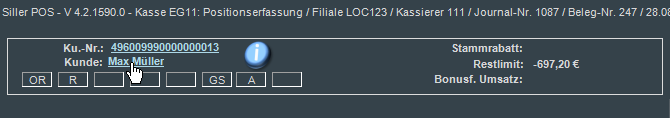 Im unteren Bereich der Maske werden die Umsätze des Kunden summiert auf das aktuelle Kalenderjahr sowie als Vergleich die Summen des letzten Kalenderjahres angezeigt. Diese Anzeige ist abhängig von einem Berechnungsprozess im ERP-System / in der Warenwirtschaft, der die berechneten Werte tagesgenau / in definierten zeitlichen Abständen über die Stammdatenversorgung an Siller POS liefert. Die Aktualität der Werte ist abhängig von der Häufigkeit der Bereitstellung der Informationen.