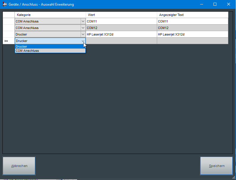 Aus diesem Grund gibt es die "Auswahl-Erweiterung". Hierüber ist es möglich, COM Anschlüsse oder Drucker anzulegen, die anschließend in den genannten Einstellungsbereichen zur Verfügung stehen.