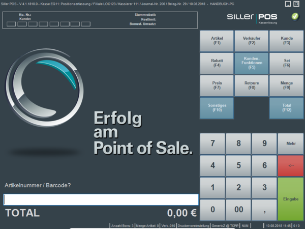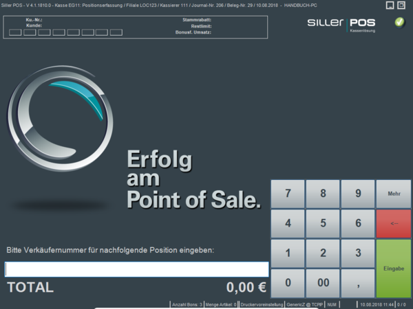 Allgemeine Einstellungen), ist vor jeder Belegerfassung zwingend die Eingabe einer gültigen Verkäufernummer erforderlich. Die Erfassung der Verkäufernummer in unterschiedlichen Varianten erfolgen.