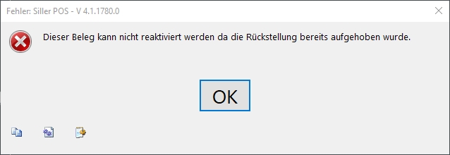 Steht der geparkte Beleg nicht mehr zur Verfügung (da evtl. die Rückstellung bereits aufgelöst wurde oder alternativ die Rückstellung zeitlich abgelaufen ist), erscheint eine entsprechende Hinweismeldung.