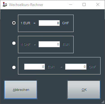 Über den "Wechselkurs-Rechner" steht eine Berechnungshilfe für den Umrechnungsfaktor zur Verfügung.
