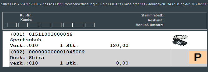 Die Funktion "Gratisartikel (F3)" setzt die aktive / markierte, bereits erfasste Position im Beleg auf den VK-Wert 0,00.