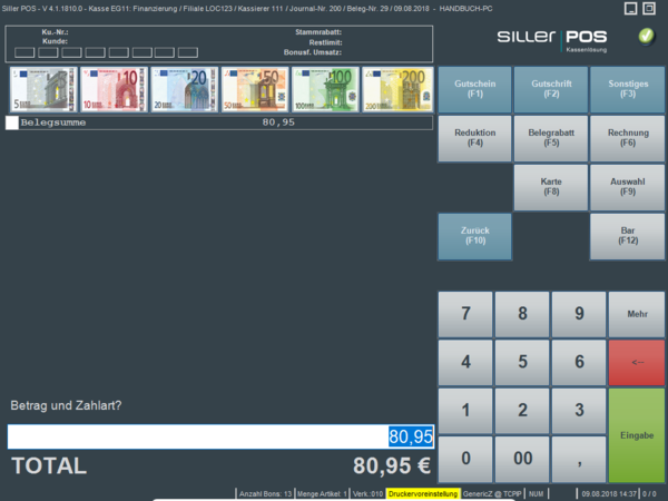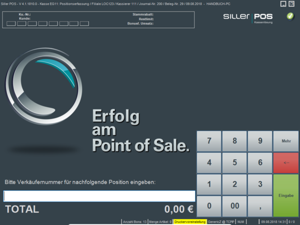 Im Bereich "Neue Kasse anmelden" wird jede an der Kasse im Standard verfügbare Funktion näher erläutert. Siller POS ist in vielen Funktionen flexibel und passt sich den Abläufen im Unternehmen an durch viele Erweiterungsmöglichkeiten der Funktionen und individuelle Belegarten und Beleglayouts.