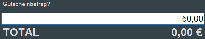Anschließend erfolgt die Abfrage des gewünschten Gutscheinbetrages. Dieser wird erfasst und mit dem Button "Eingabe" oder über die Taste Enter bestätigt.