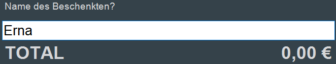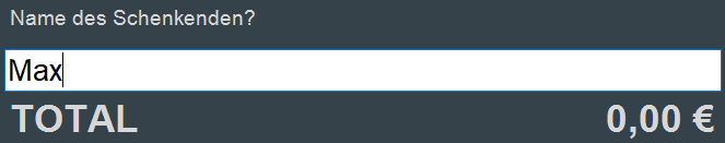 Die nachfolgenden Abfragen nach Name des Schenkenden und Name des Beschenkten sind Informationen, die zusätzlich auf einem Drucklayout verwendet werden können. Damit kann der komplette Gutschein durch die Kasse gedruckt werden. Im Standard sind diese Abfragen eingeschaltet, allerdings können diese auch über die Einstellungen (Anwendungs-Parameter (für Anwender änderbar)) deaktiviert werden. Es handelt sich nicht um Zwangseingabeinformationen, daher können diese Abfragen auch mit dem Button "Eingabe" oder der Taste Enter ohne Erfassung übergangen werden.