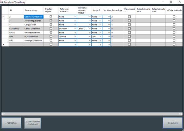 Verbindung des Gutscheintyps mit einem Referenznummer Modus zur Erfassung von Referenznummern während der Gutscheineinlösung
