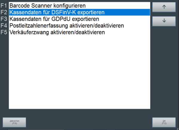 Kassendaten Export für DSFinV-K (F2)