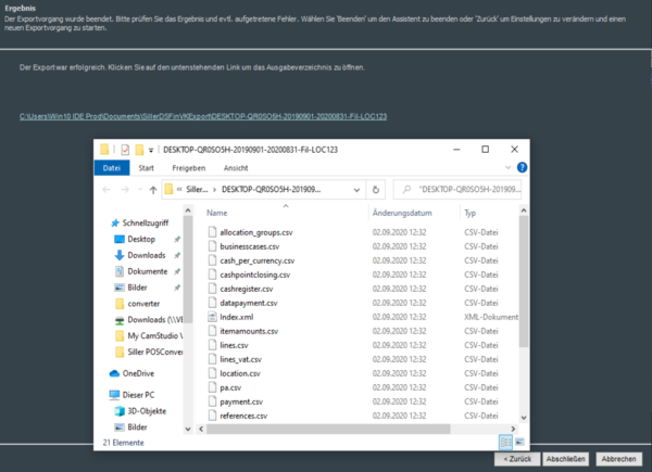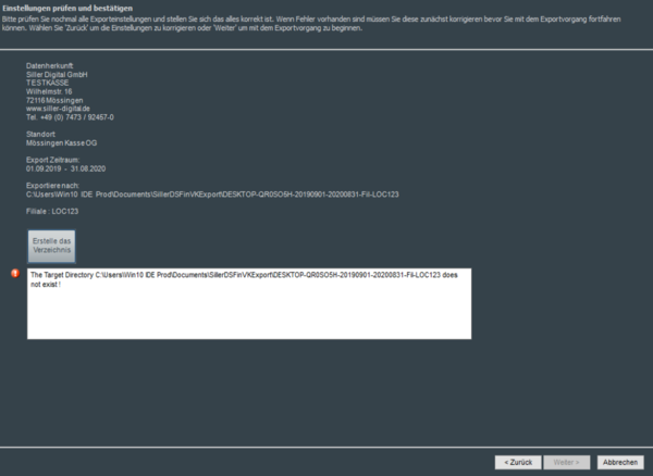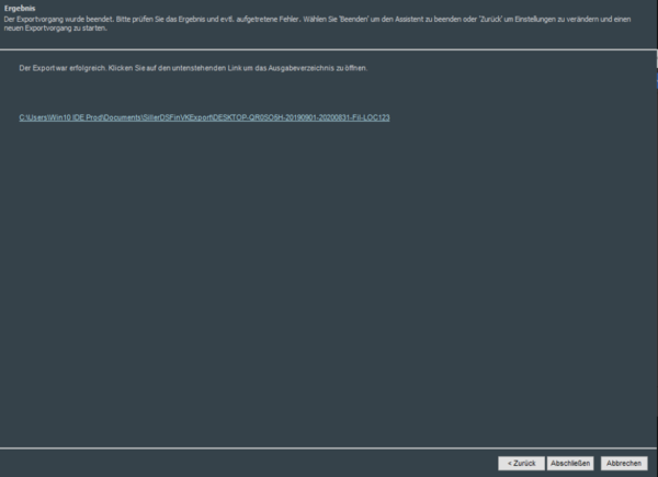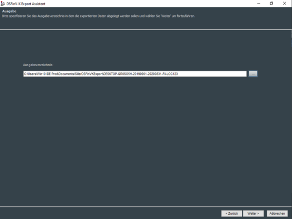 Nachdem nun in der nächsten Maske das gewünschte Ausgabeverzeichnis angegeben wurde, wird der gewünschte Zeitraum für die gewählte Filiale exportiert.