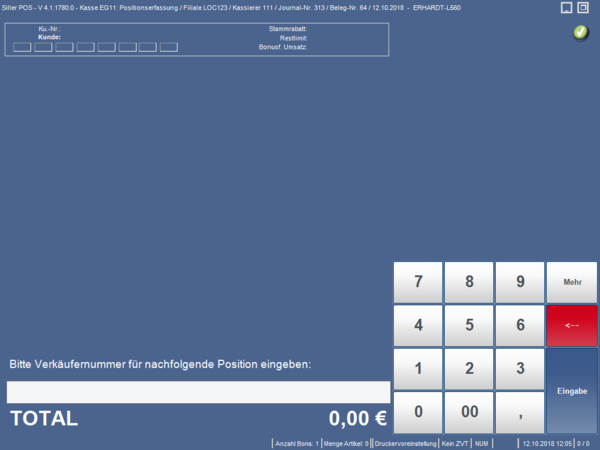 Verkäufernummer (ggf. auch Kassierernummer, je nach Einstellung des Systems) erfassen