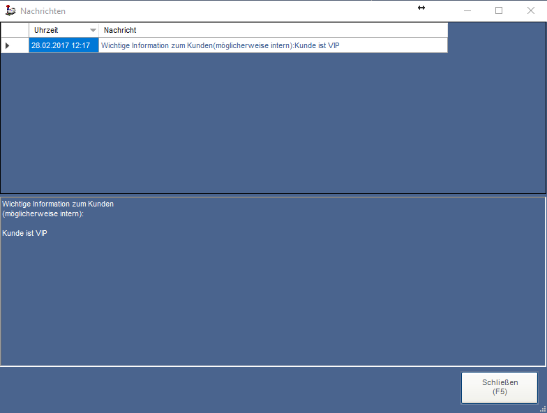 Ein nachträgliches Abrufen der Nachrichten nach Abschluss des Verkaufsbeleges ist nicht mehr möglich.