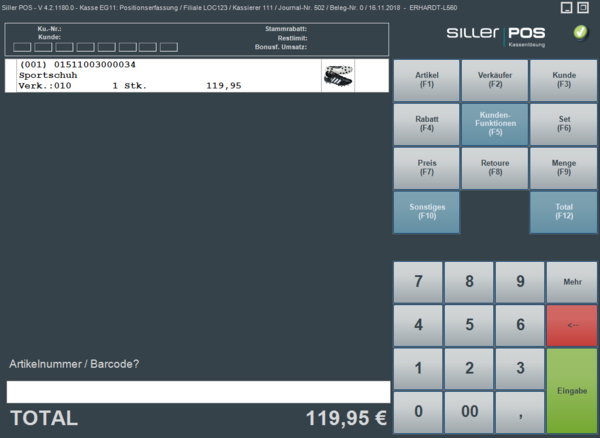 Nach erfolgreich durchgeführter Kassiereranmeldung können nun Verkaufsbelege erfasst werden:
