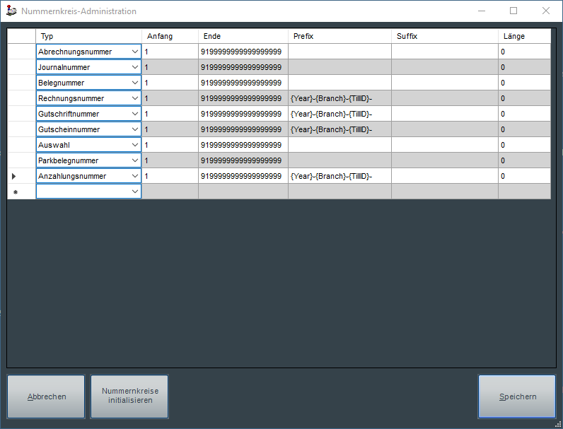 Die Einstellungen im Bereich "Nummernkreise" müssen pro Filiale und dort installiertem Kassensystem vorgenommen werden und eindeutig sein.