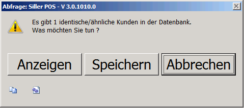 Wird ein bereits angelegter Kunde gefunden, der phonetische Übereinstimmungen mit den neu erfassten Kundendaten aufweist, erfolgt eine entsprechende Hinweismeldung. Diese Funktion unterstützt ganz entscheidend in der Vermeidung einer Doppelanlage.