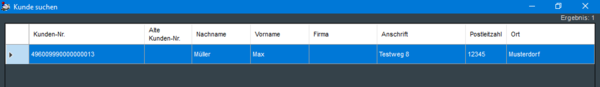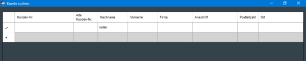 Es erscheint im Falle eines aktiven Kundenzwangs eine Maske für die Kundensuche.