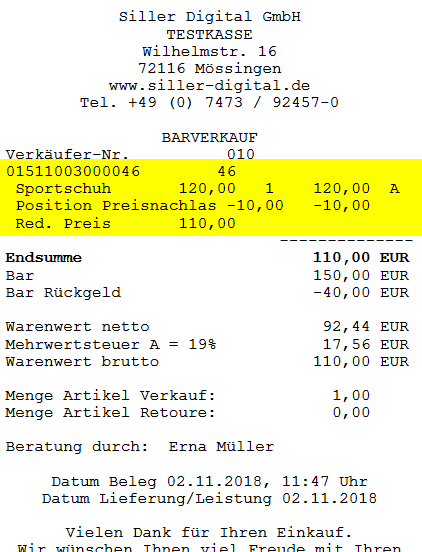 Die Darstellung auf dem Verkaufsbeleg erfolgt für den Kunden transparent und nachvollziehbar.