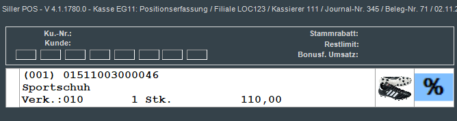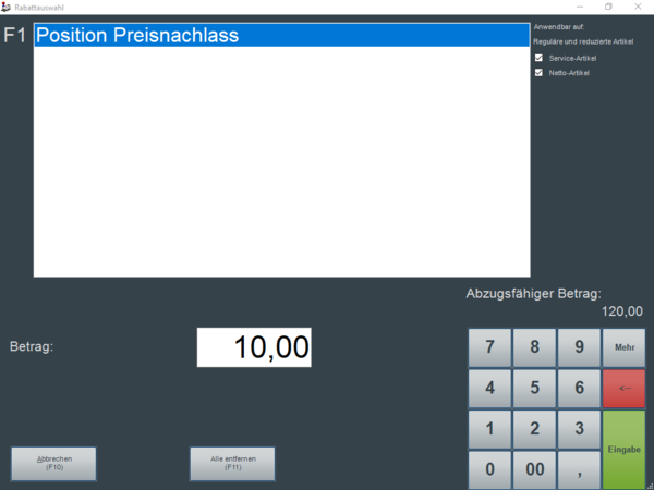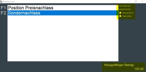 Mit "Eingabe" oder ENTER auf der PC-Tastatur wird die Reduktion angewendet und in den Verkaufsvorgang auf die betreffende Position übernommen.