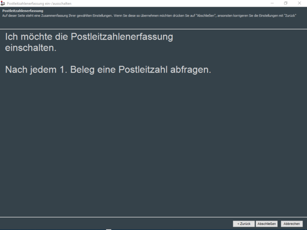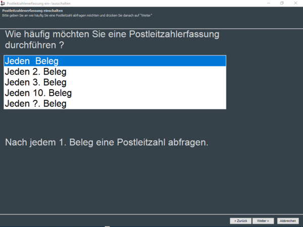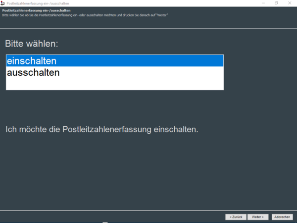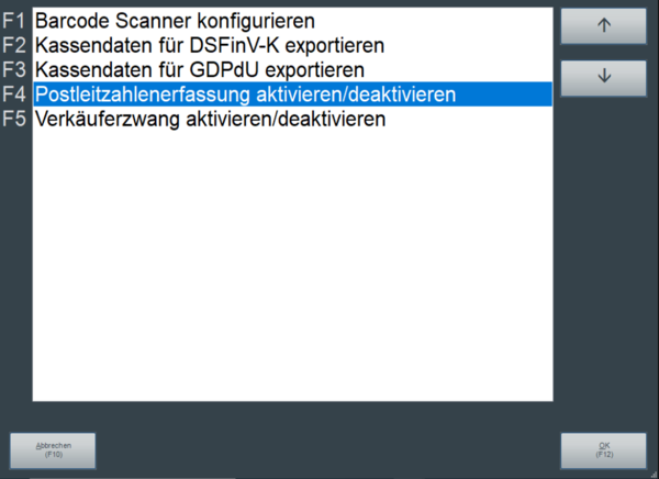 Postleitzahlenerfassung aktivieren/deaktivieren (F4)