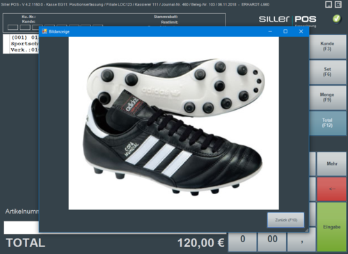 Auf Positionsebene können Artikelbilder angezeigt werden. Voraussetzung ist dabei entweder ein Bildkatalog auf dem Dateisystem im lokalen Netzwerk (Bilddateien), Bilddaten zum Artikel in der Stammdatenbank, oder ein Bildkatalog erreichbar über eine URL Adresse im Web. Die Artikelbilder sind sinnvoll bei der Kundenberatung und unterstützen im Verkaufsvorgang. Zusätzlich zu dieser Option müssen weitere Parameter aktiviert werden, abhängig davon, an welcher Stelle der Bildkatalog vorgehalten wird. Neben Bildformaten können hier auch animierte Bilder angezeigt werden.