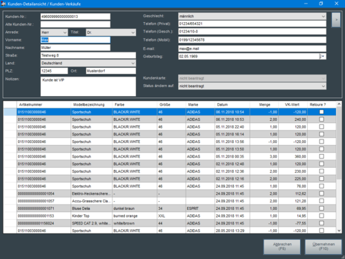 Die Maske Kundensuche kann allerdings über die Such-Masken nach individuellen Ansprüchen und Bedürfnissen konfiguriert werden. An diese individuelle Konfiguration müsste dann auch der Kundensuche Standardspalten Index angepasst werden.