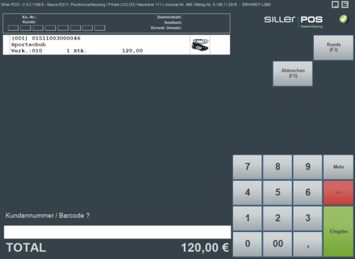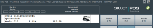 Zusätzlich ist es möglich, vor jedem Verkaufsvorgang eine Kassierernummer abzufragen (siehe hierzu auch Anwendungs-Parameter).