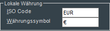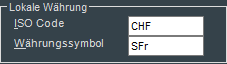 Im Bereich Lokale Währung werden die Grundwährung und das Währungssymbol des Kassensystems festgelegt (im Beispiel für EUR und CHF).