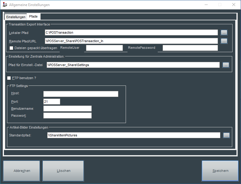Ist die Option Artikelbilder benutzen aktiviert, kann hier der Standardpfad zu den Bilddaten hinterlegt werden.