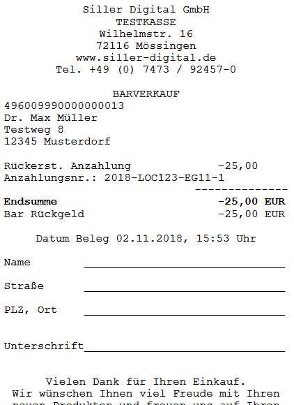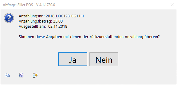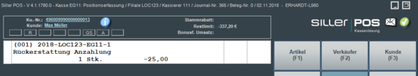 Die Rückerstattung der Anzahlung wird in den Verkaufsbeleg übernommen.