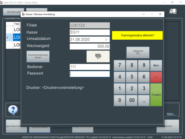 Zudem werden alle Trainings-Vorgänge in der jeweils zugeordneten Kassiererabrechnung statistisch ausgewiesen (bleiben aber in der Abrechnung ansonsten ohne Bedeutung).