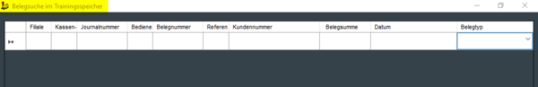 Über den Button "Trainings-Speicher (F1)" kann eine Suche auf Trainings-Vorgänge durchgeführt werden.