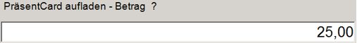 Über diese Funktion werden Gutscheinkarten aufgeladen beziehungsweise findet der Verkauf einer elektronischen Gutscheinkarte mit gewünschtem Wert statt. Dazu wird der gewünschte Gutscheinbetrag in der Abfrage erfasst.