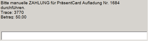 Anschließend wird über das Zahlungsverkehrsterminal (Kartenzahlungsterminal) der Vorgang der Aufladung durchgeführt. Dazu sind dort angezeigten Anweisungen zu beachten. Nach erfolgreicher Aufladung wird der Gutscheinverkauf, analog zum herkömmlichen Verkauf eines Papiergutscheins, in der Positionsmaske angezeigt.